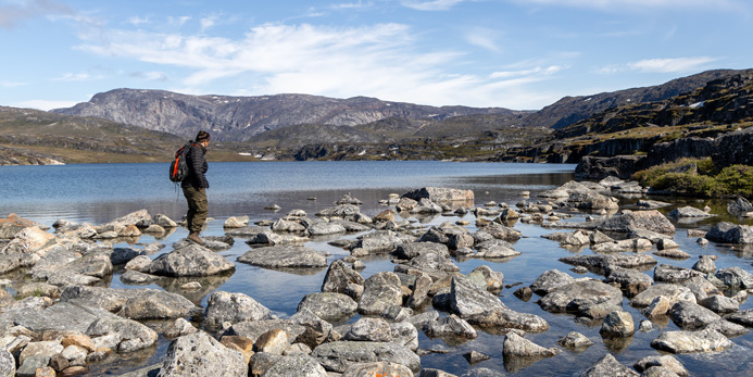 The water here is a freshwater lake, connected to the sea only 50m away by the stream which flows through these boulders.