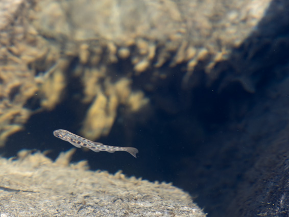 A few weeks before we passed by it was full of trout leaping up the steam to spawn in the lake - the locals catch loads each year as they migrate. When we were there quite a few young ones were swimming between the boulders.