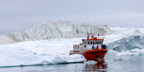 A highlight of the week was taking a boat tour around the huge icebergs stranded on the terminal moraine at the mouth of the Ilulissat Icefjord.  This trip was fogged off earlier in the visit, and it was after 11.00pm by the time we got to do it, but of course with the midnight sun it didn't really matter.  |